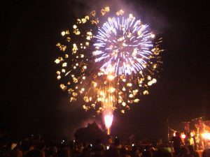 おうみ祭りのフィナーレを飾る花火大会。間近で打ち上げられる約1000発の花火は大迫力。