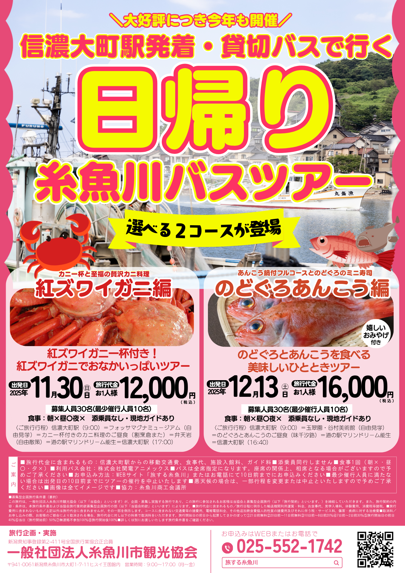 信濃大町駅発着・貸切バスで行く日帰り糸魚川バスツアー
