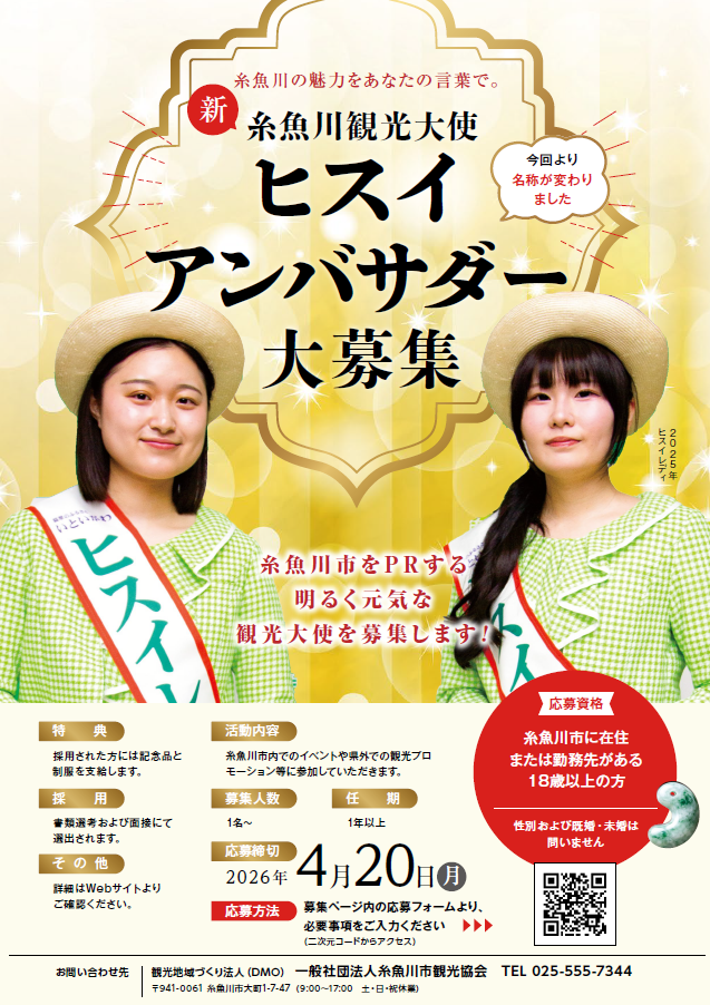 “新”糸魚川観光大使ヒスイアンバサダー大募集!