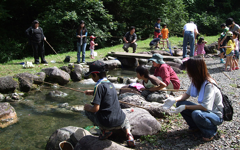ヒスイ峡展望台の近く、高浪の池へ向かう道とヒスイ峡学習護岸へ向かう道の分岐点にヒスイ峡フィッシングパークがあります。川の流れを引き込んだ人工の渓流で、初心者でも気軽に渓流釣りの気分が味わえます。釣り場にはイワナ、ニジマスが泳いでおり、釣りを楽しんだ後は自分で釣った魚をその場で焼いて食べることができます。